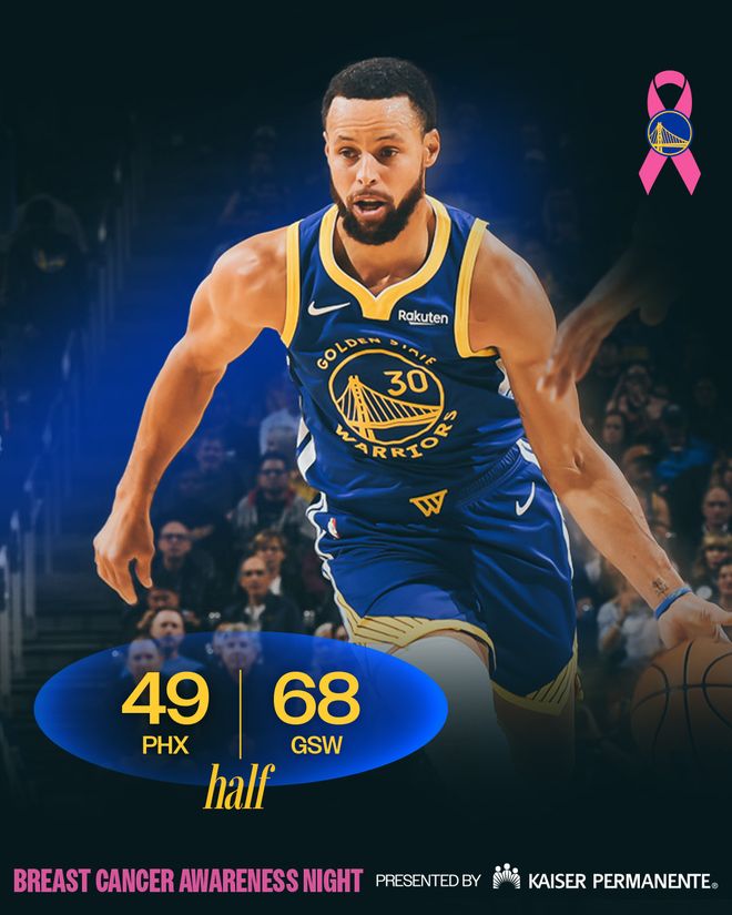勇士隊的穆迪上半場得到13分,庫里得到12分,希爾德得到11分;太陽隊的布克得到17分。